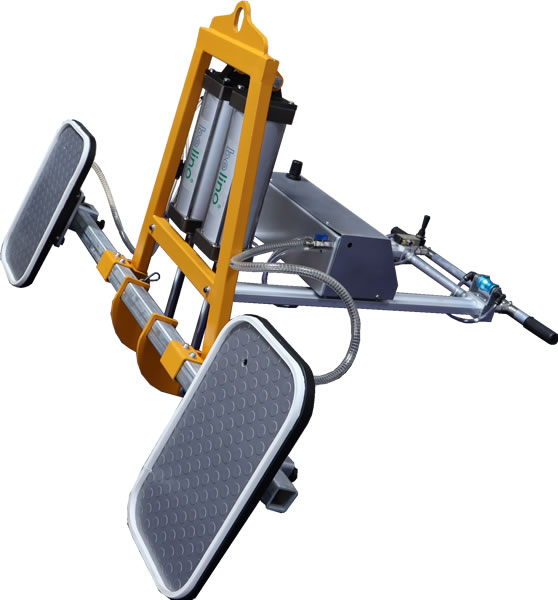 This vacuum lifter is designed to lift smooth or rough marble and granite slabs. Pneumatic vertical-horizontal tilting 0 to 90°.